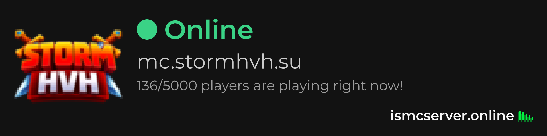 Dark theme: https://ismcserver.online/mc.stormhvh.su/widget?dark=true