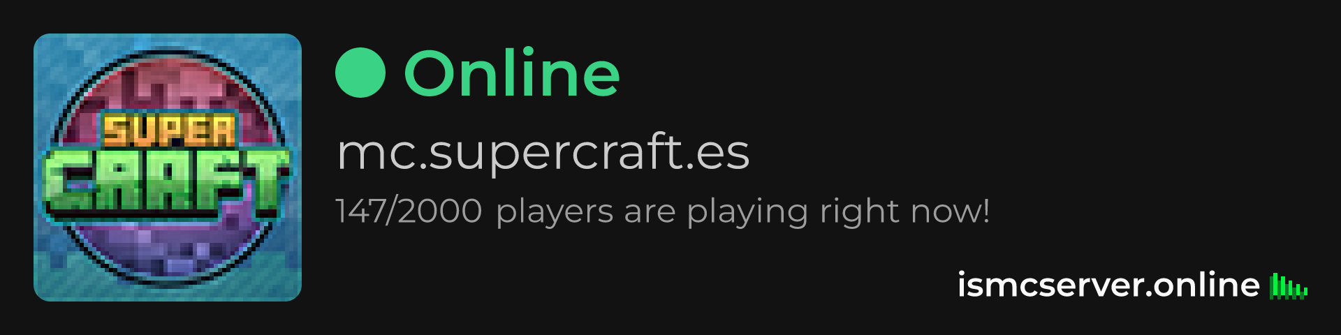 Dark Rounded image: https://ismcserver.online/mc.supercraft.es/widget?dark&rounded