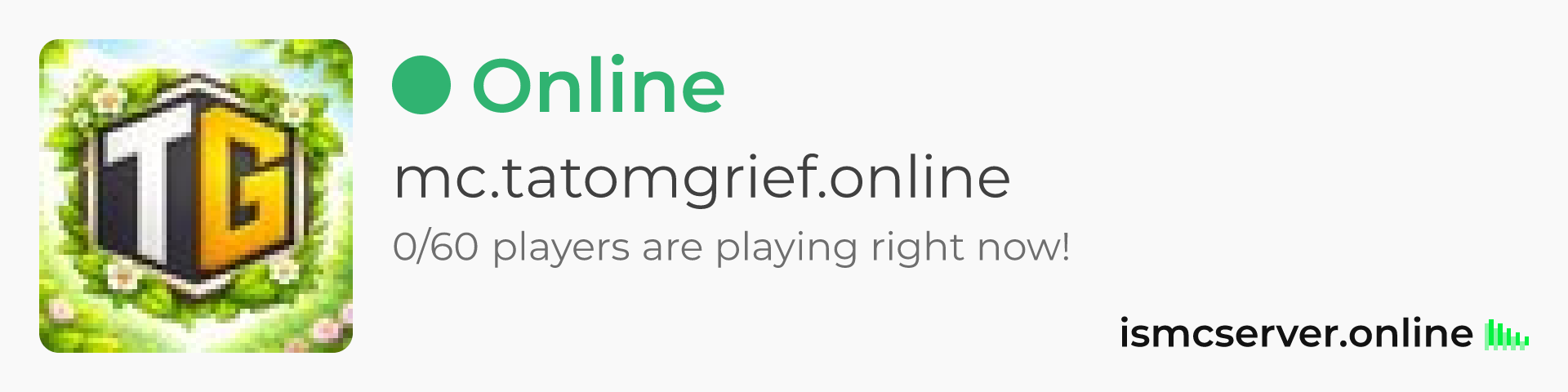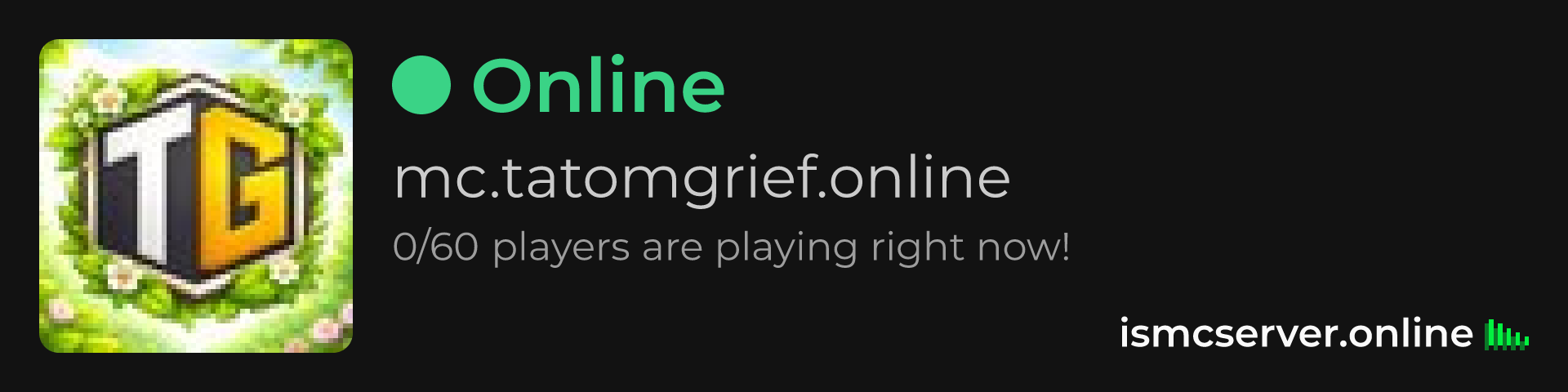 Dark theme: https://ismcserver.online/mc.tatomgrief.online/widget?dark=true