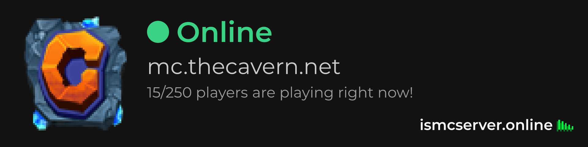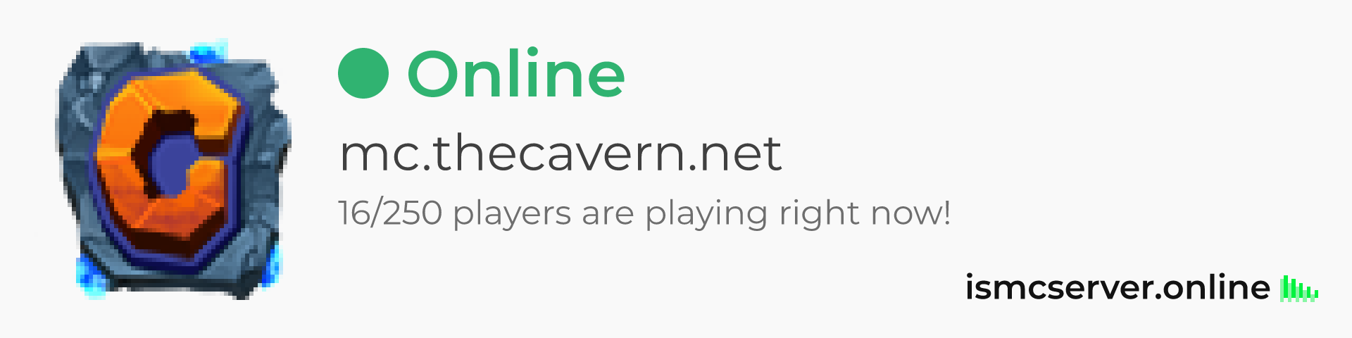 Dark theme: https://ismcserver.online/mc.thecavern.net/widget?dark=true