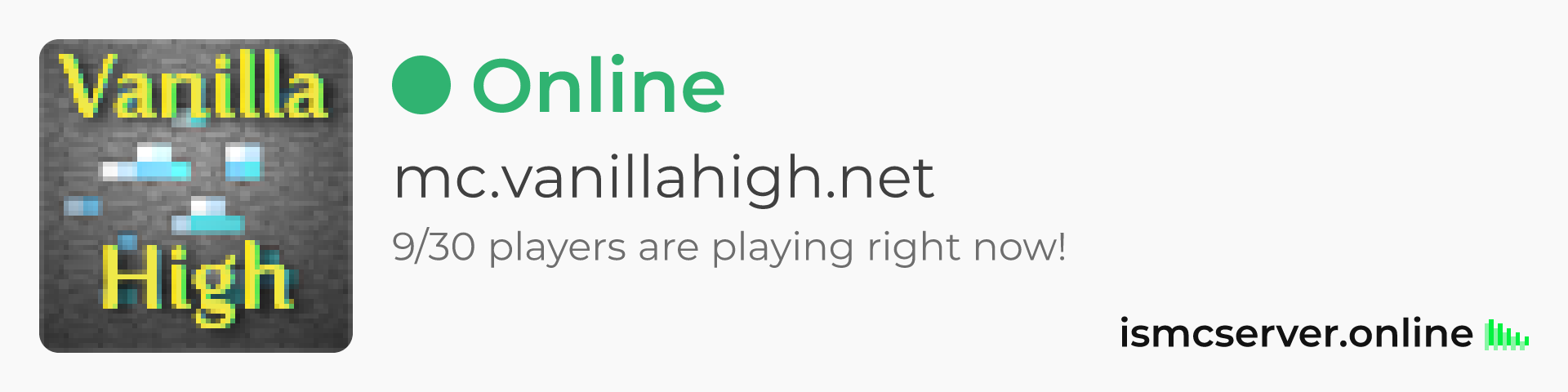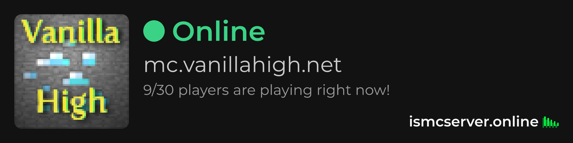Dark Rounded image: https://ismcserver.online/mc.vanillahigh.net/widget?dark&rounded