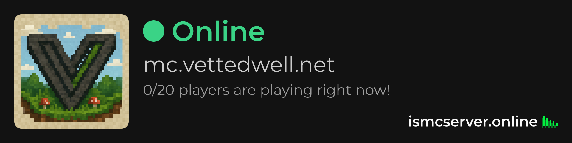 Dark Rounded image: https://ismcserver.online/mc.vettedwell.net/widget?dark&rounded