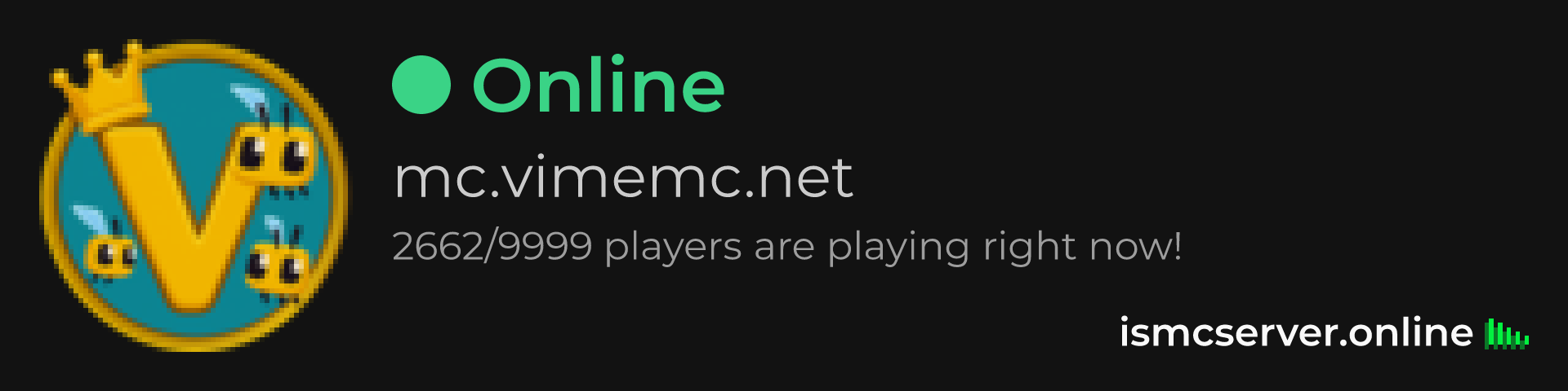 Dark Rounded image: https://ismcserver.online/mc.vimemc.net/widget?dark&rounded