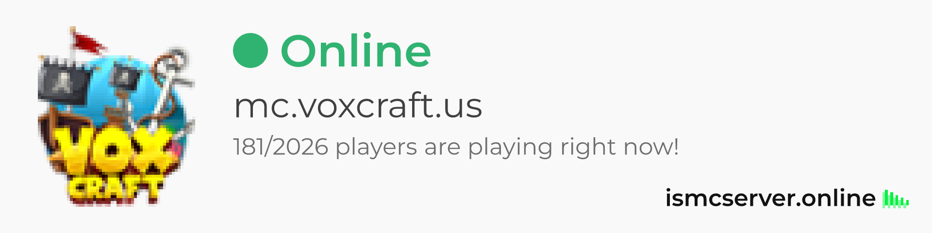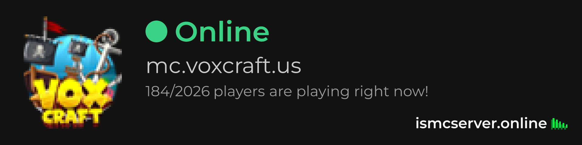 Dark Rounded image: https://ismcserver.online/mc.voxcraft.us/widget?dark&rounded