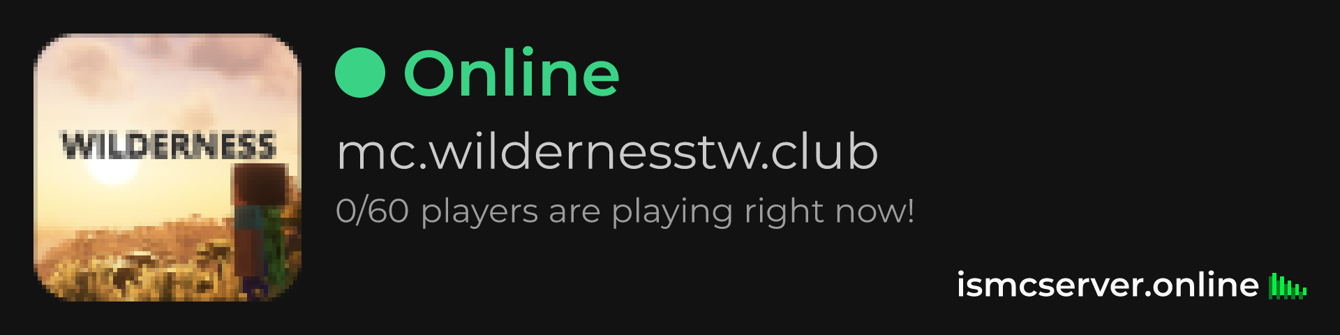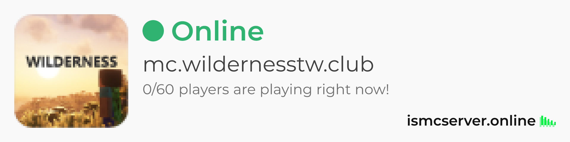Dark theme: https://ismcserver.online/mc.wildernesstw.club/widget?dark=true
