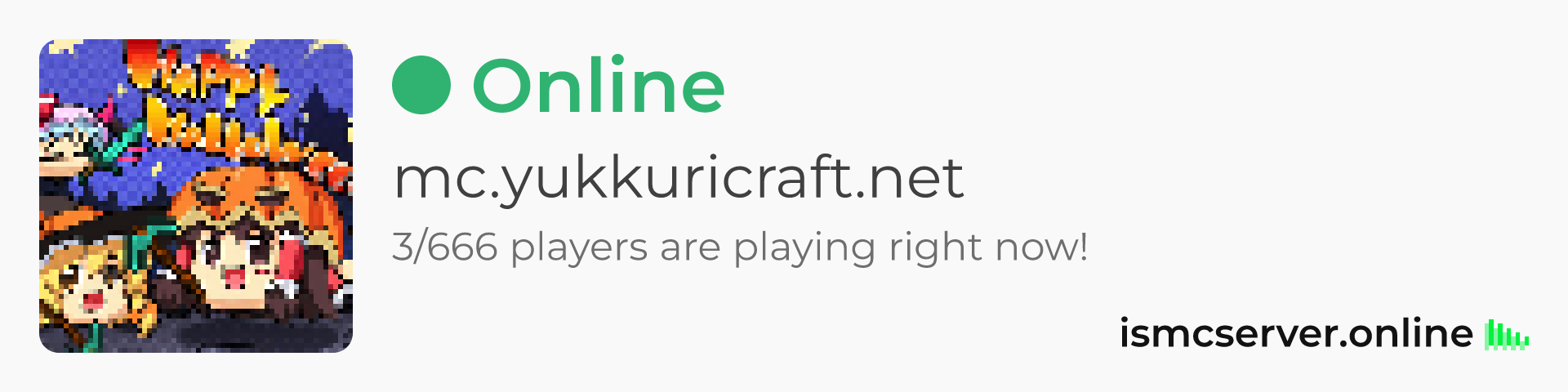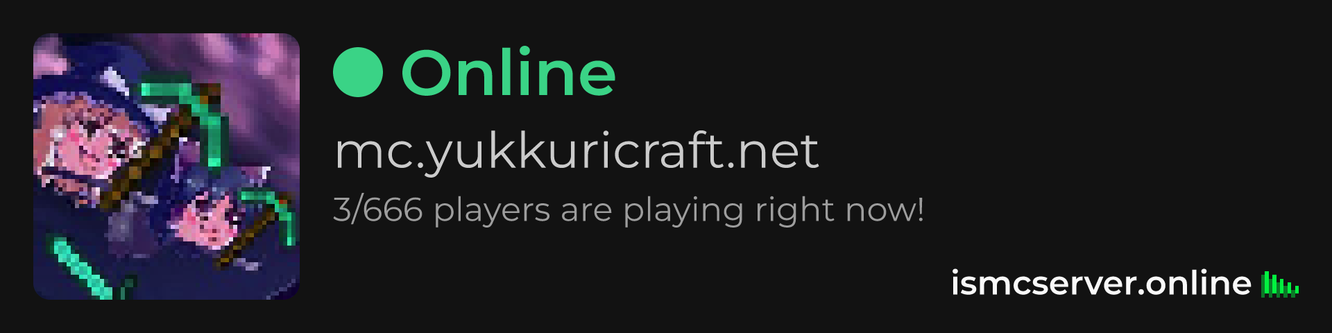 Dark theme: https://ismcserver.online/mc.yukkuricraft.net/widget?dark=true