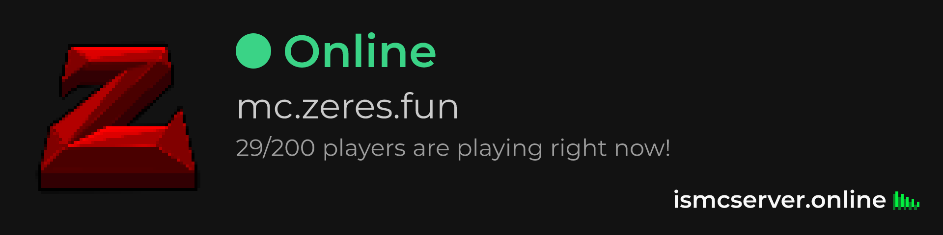 Dark theme: https://ismcserver.online/mc.zeres.fun/widget?dark=true