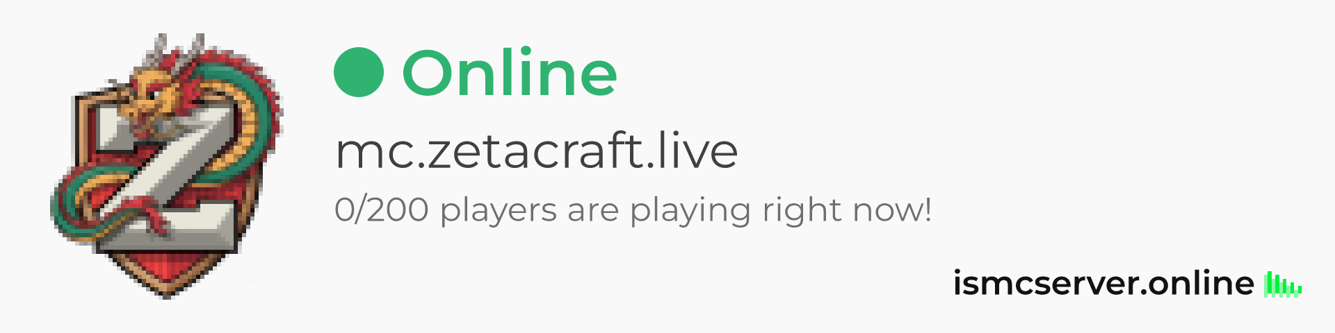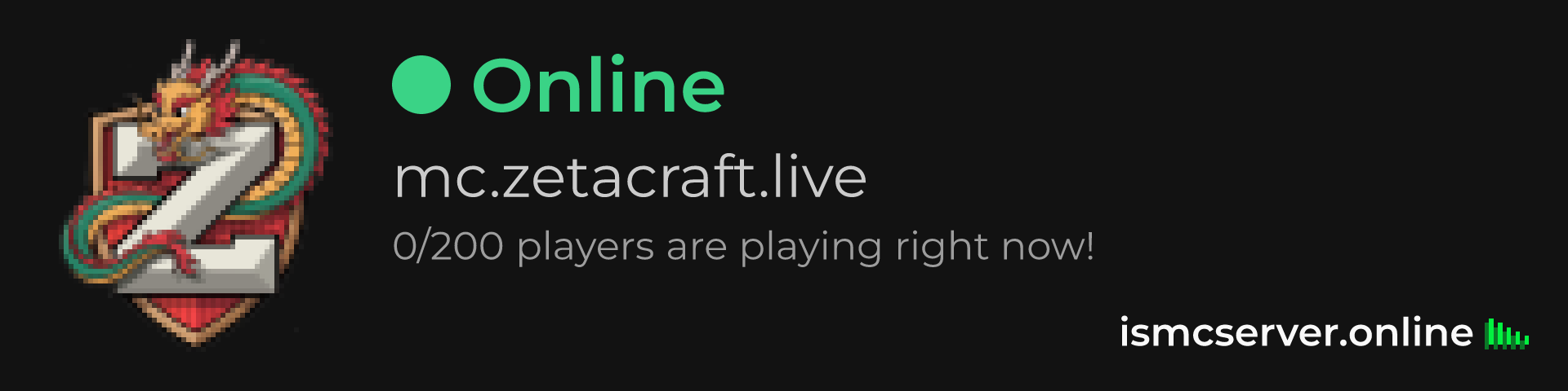 Dark theme: https://ismcserver.online/mc.zetacraft.live/widget?dark=true