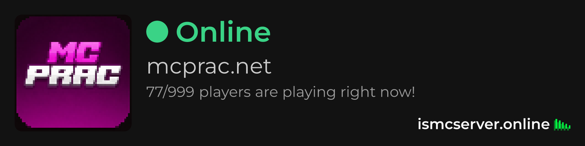 Dark Rounded image: https://ismcserver.online/mcprac.net/widget?dark&rounded