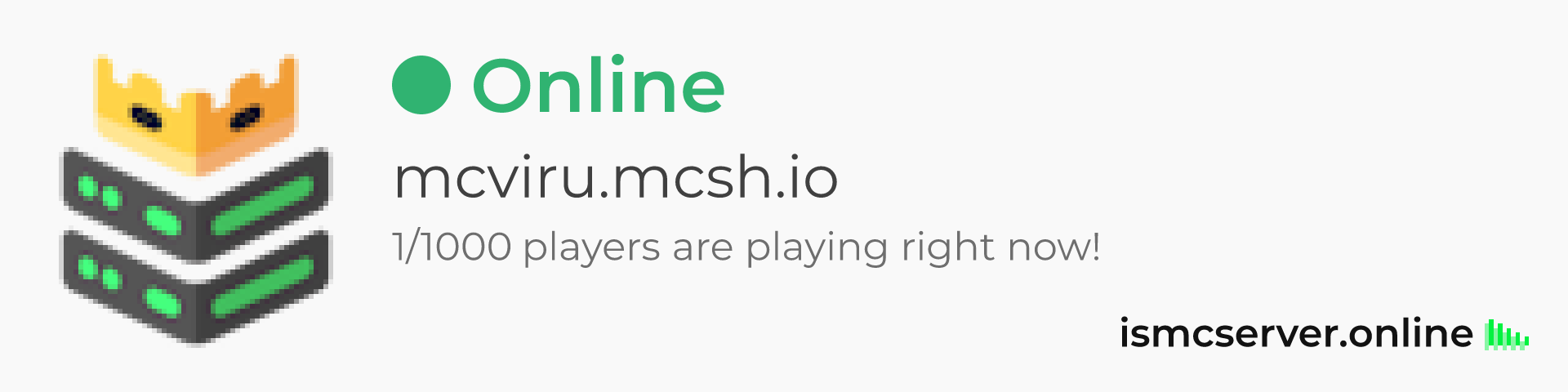 Dark theme: https://ismcserver.online/mcviru.mcsh.io/widget?dark=true