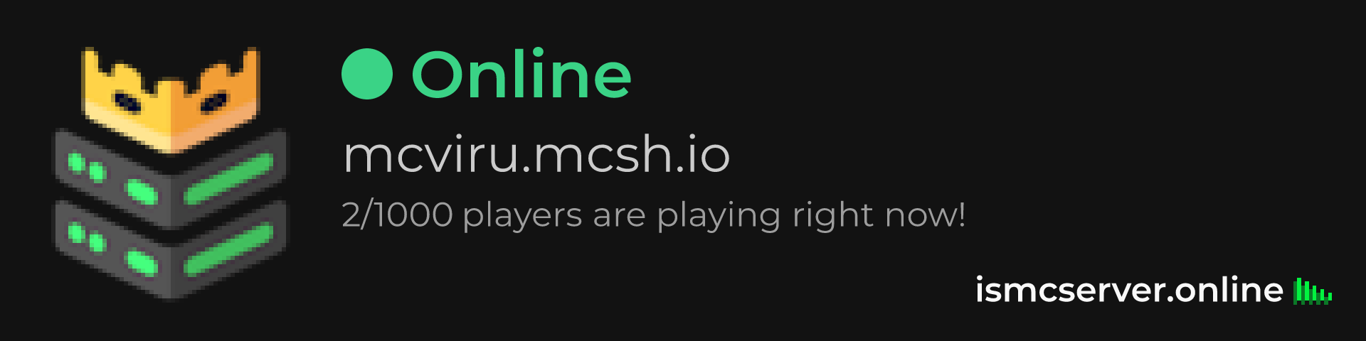 Dark Rounded image: https://ismcserver.online/mcviru.mcsh.io/widget?dark&rounded