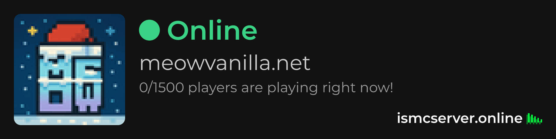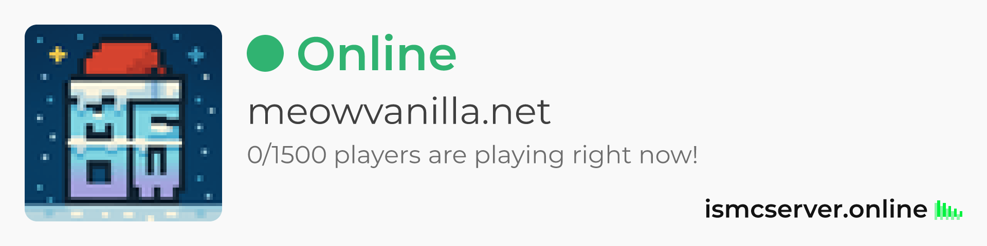 Dark Rounded image: https://ismcserver.online/meowvanilla.net/widget?dark&rounded