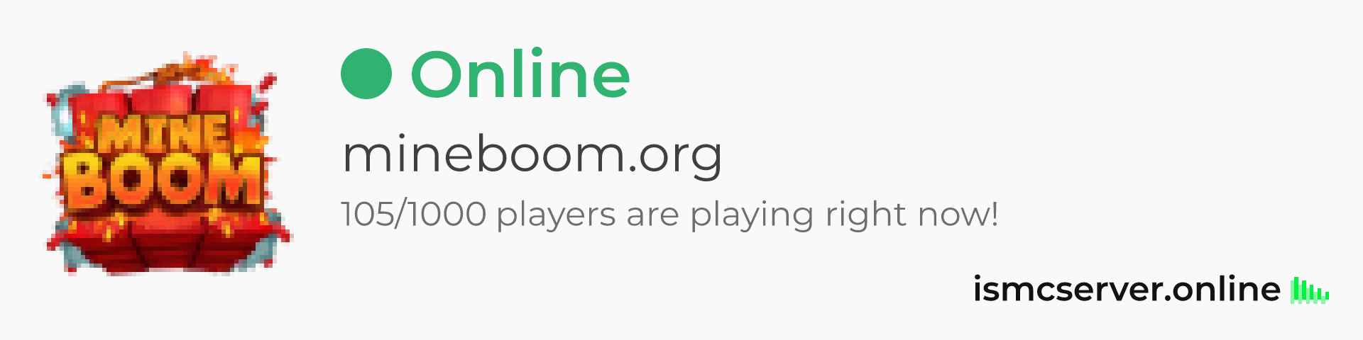 Dark theme: https://ismcserver.online/mineboom.org/widget?dark=true