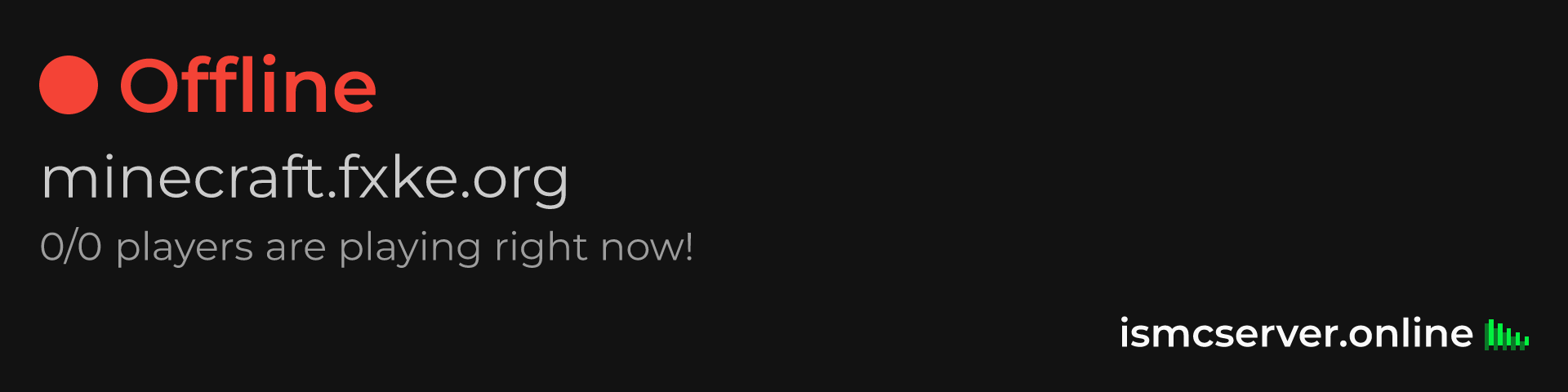 Dark theme: https://ismcserver.online/minecraft.fxke.org/widget?dark=true