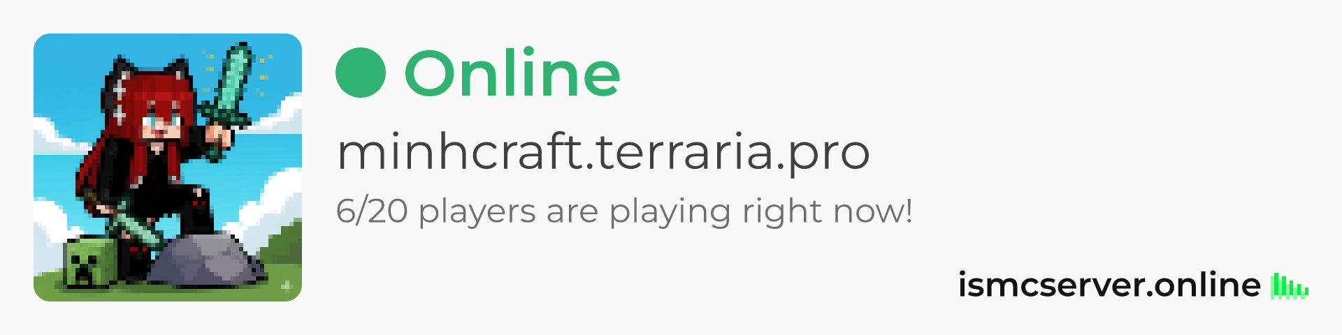 Dark theme: https://ismcserver.online/minhcraft.terraria.pro/widget?dark=true