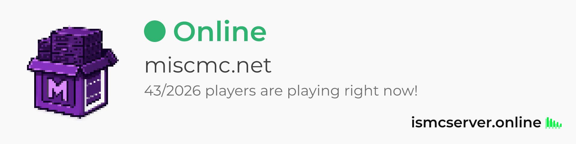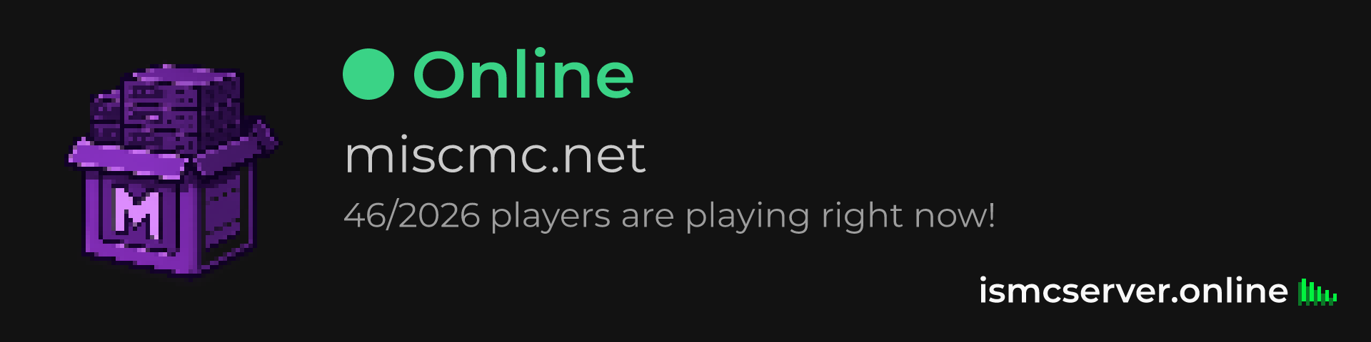 Dark Rounded image: https://ismcserver.online/miscmc.net/widget?dark&rounded