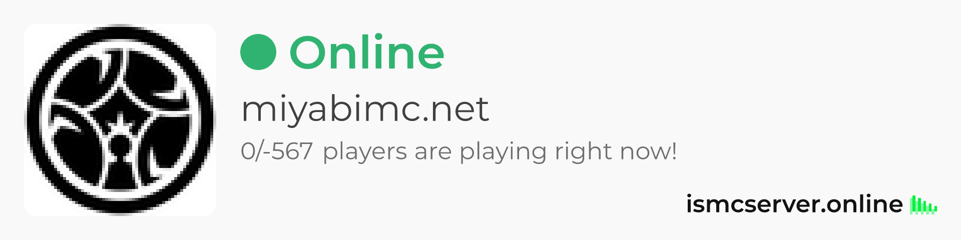 Dark Rounded image: https://ismcserver.online/miyabimc.net/widget?dark&rounded