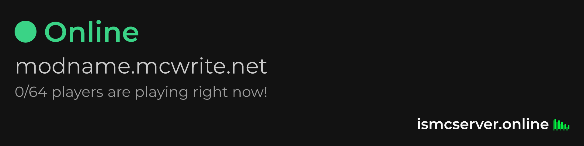 Dark Rounded image: https://ismcserver.online/modname.mcwrite.net/widget?dark&rounded