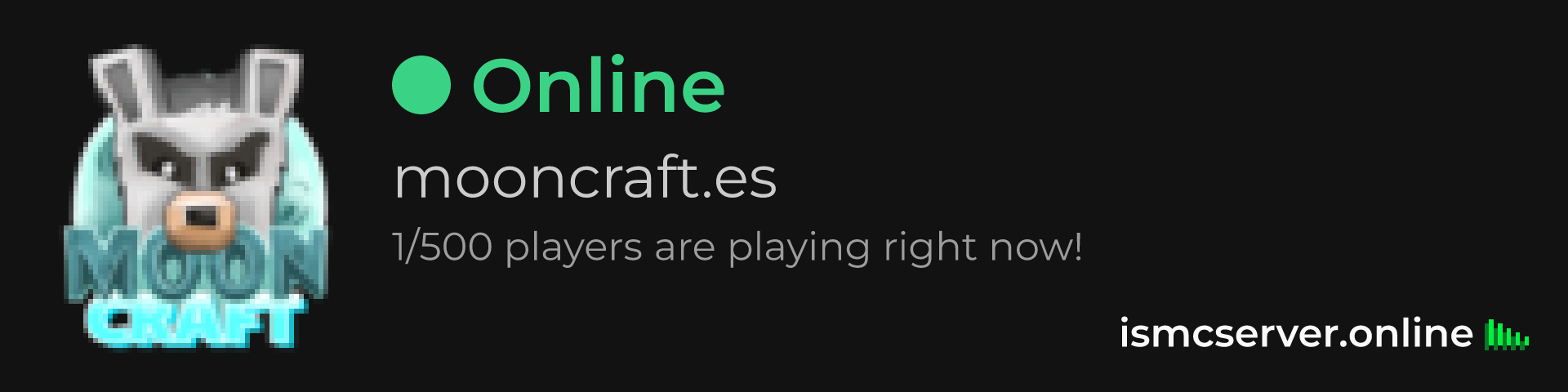 Dark Rounded image: https://ismcserver.online/mooncraft.es/widget?dark&rounded