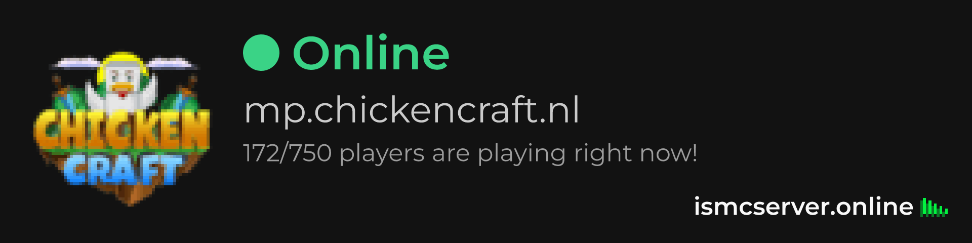 Dark Rounded image: https://ismcserver.online/mp.chickencraft.nl/widget?dark&rounded