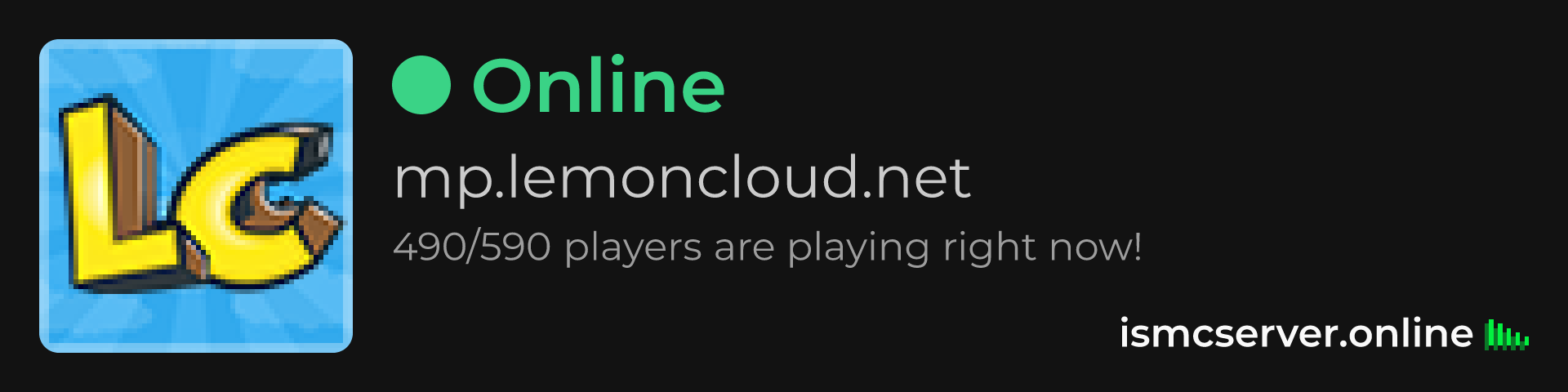 Dark theme: https://ismcserver.online/mp.lemoncloud.net/widget?dark=true