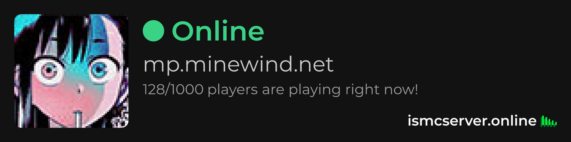 Dark theme: https://ismcserver.online/mp.minewind.net/widget?dark=true