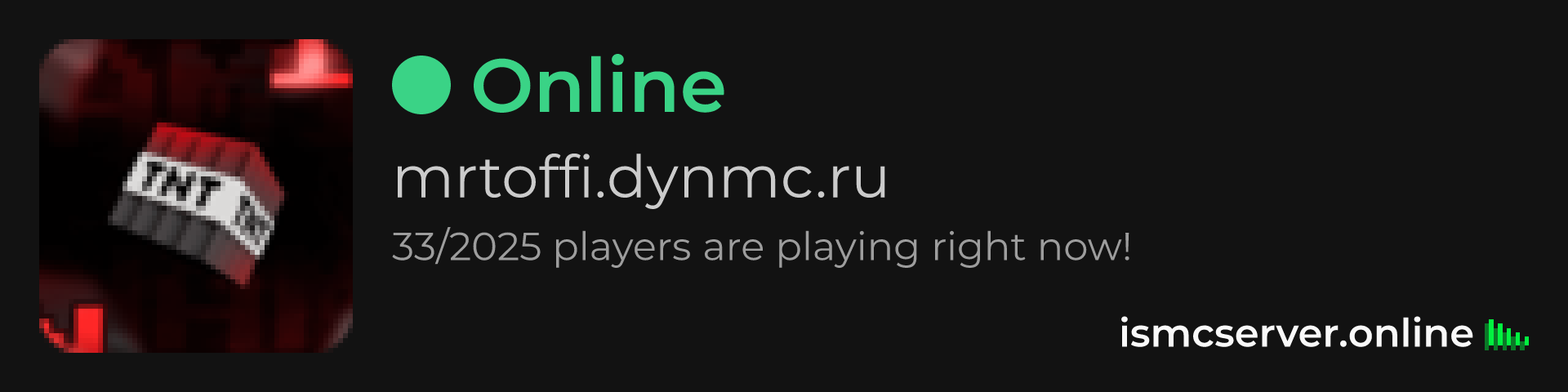 Dark theme: https://ismcserver.online/mrtoffi.dynmc.ru/widget?dark=true