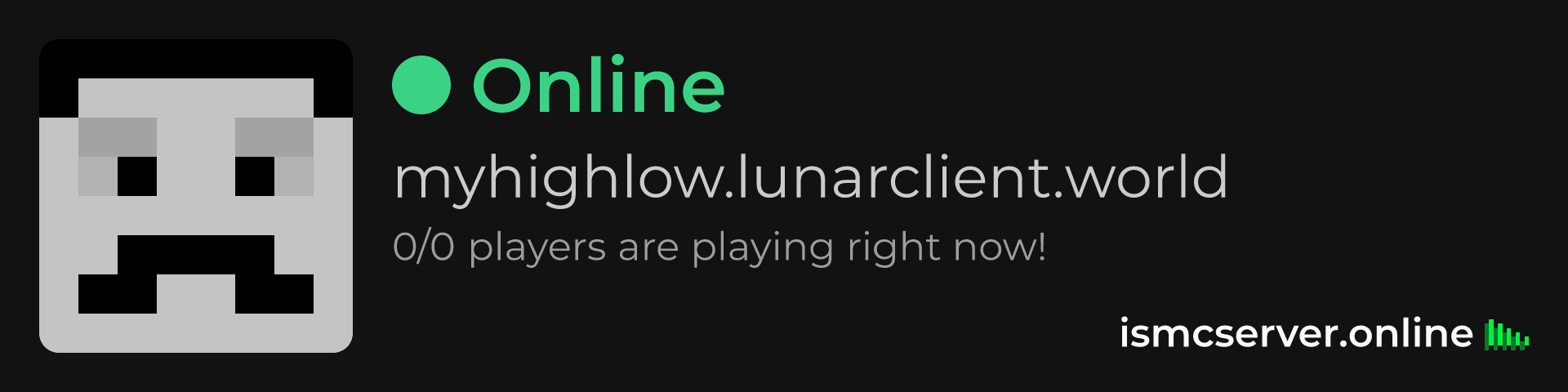 Widgets are accessible for everyone, without needing any token. Simply add /widget at the end of server's url. Like this: https://ismcserver.online/myhighlow.lunarclient.world/widget.