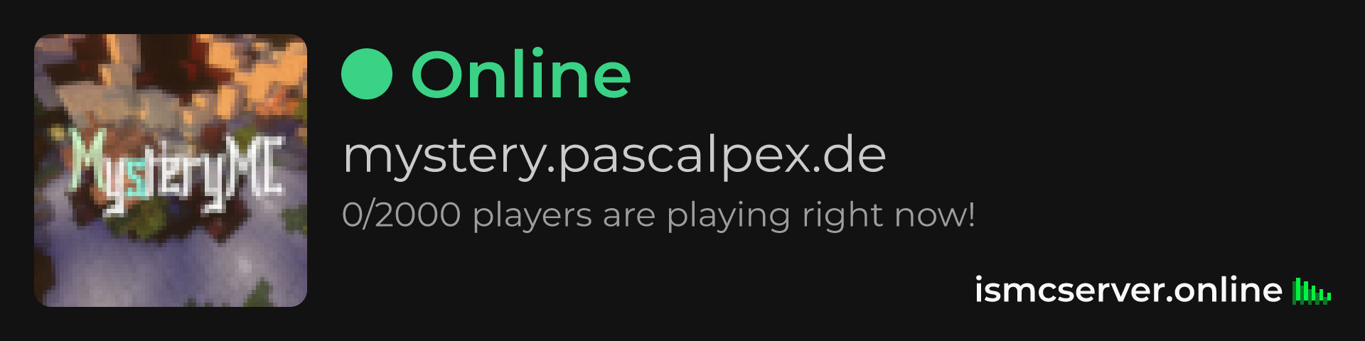 Dark Rounded image: https://ismcserver.online/mystery.pascalpex.de/widget?dark&rounded