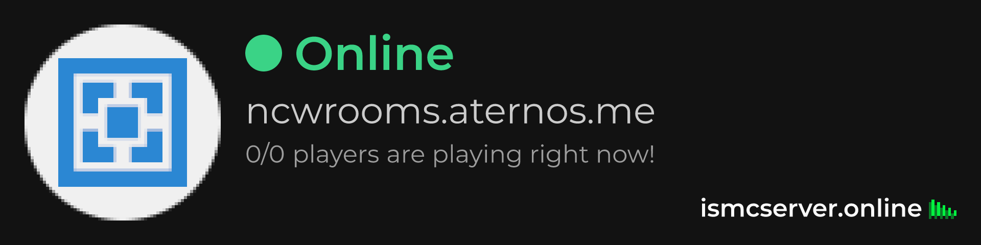 Dark theme: https://ismcserver.online/ncwrooms.aternos.me/widget?dark=true