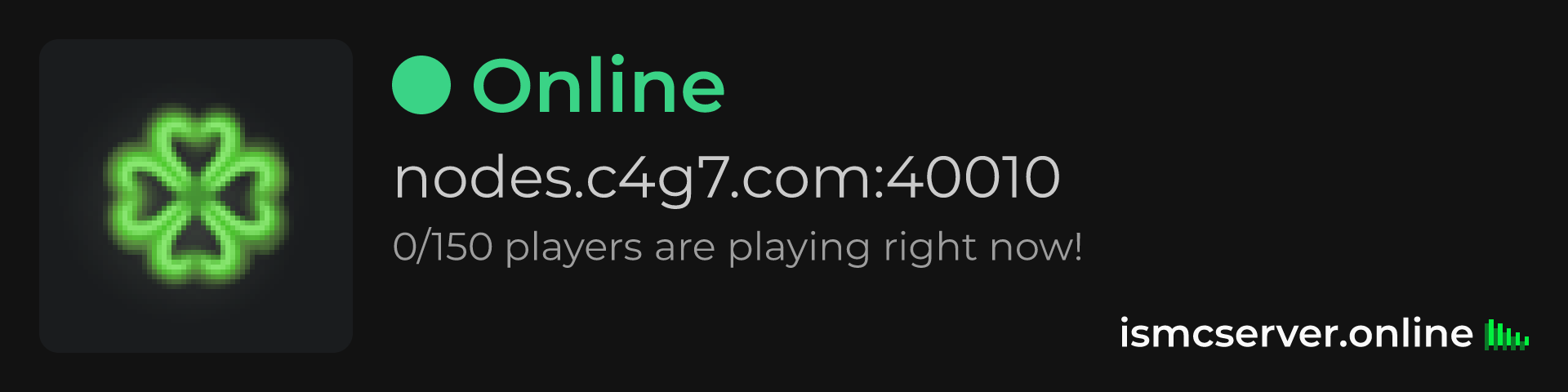 Dark theme: https://ismcserver.online/nodes.c4g7.com:40010/widget?dark=true
