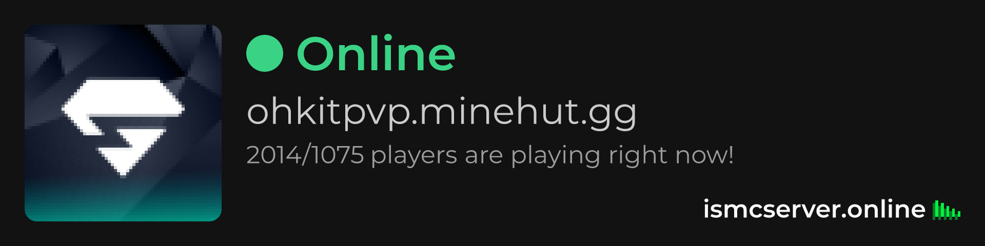 Dark Rounded image: https://ismcserver.online/ohkitpvp.minehut.gg/widget?dark&rounded