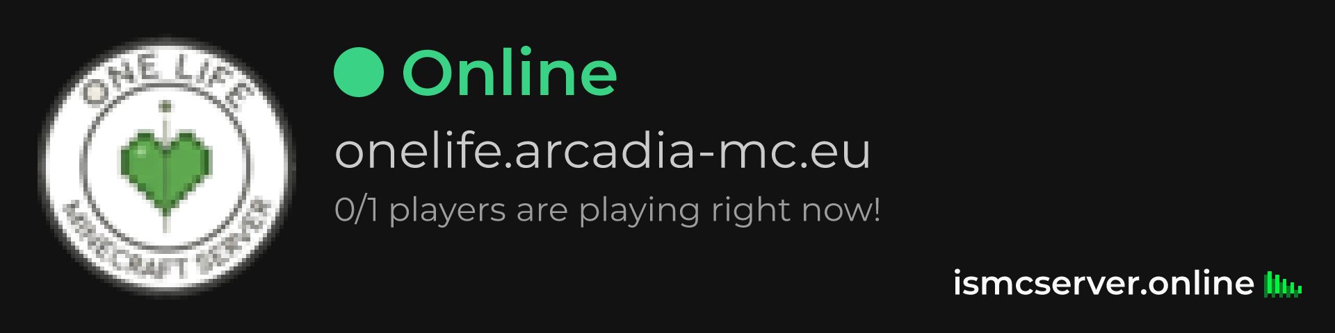 Dark Rounded image: https://ismcserver.online/onelife.arcadia-mc.eu/widget?dark&rounded