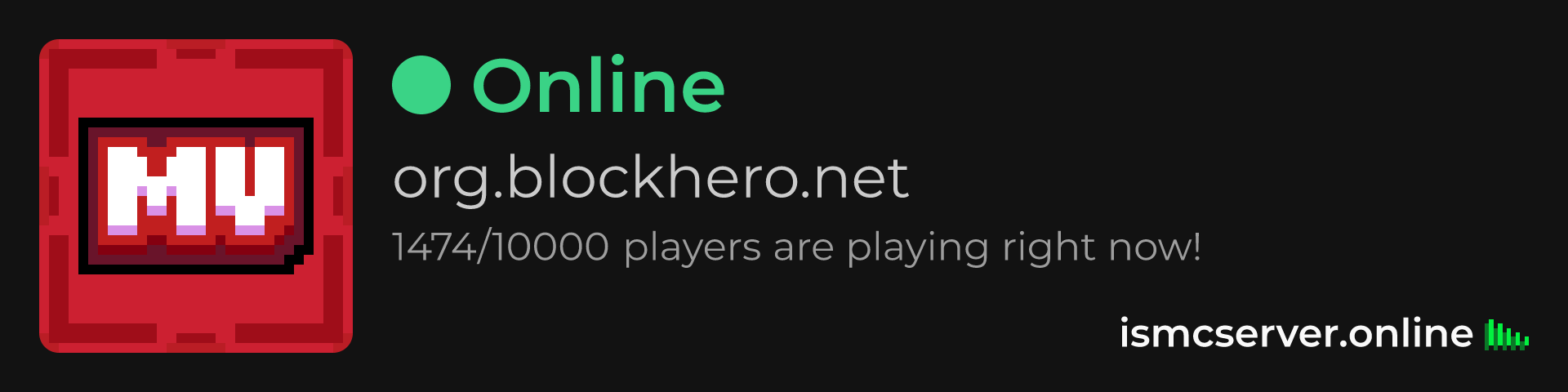 Dark Rounded image: https://ismcserver.online/org.blockhero.net/widget?dark&rounded