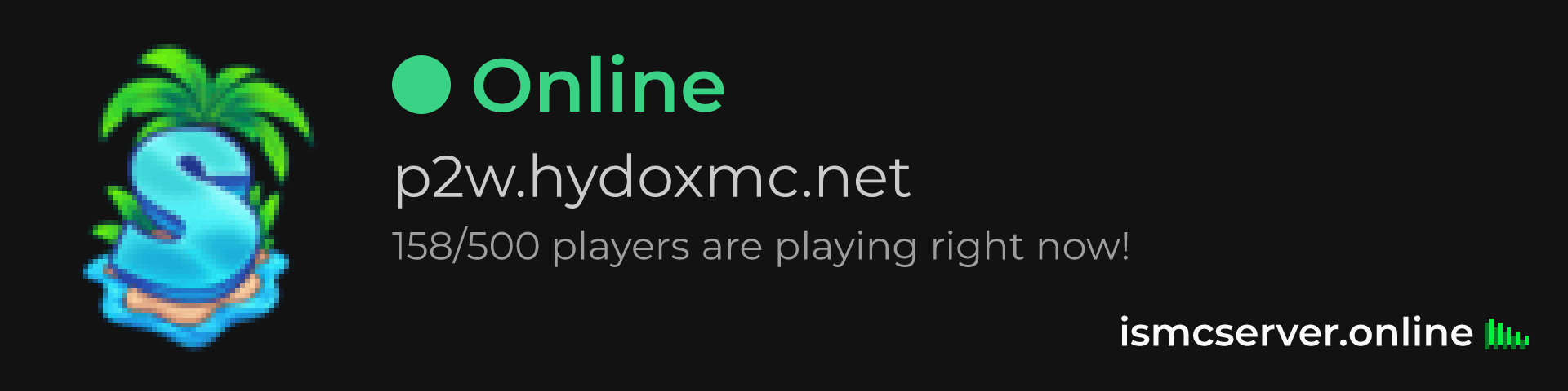 Dark Rounded image: https://ismcserver.online/p2w.hydoxmc.net/widget?dark&rounded