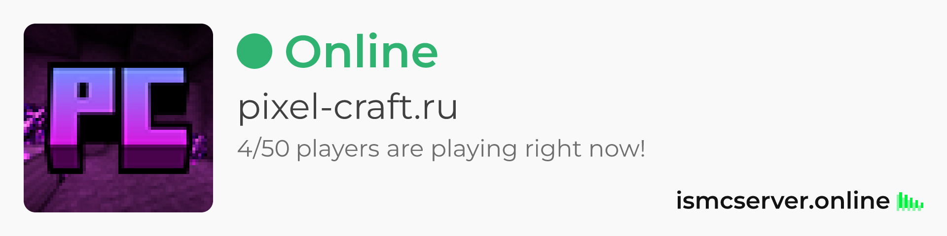 Dark theme: https://ismcserver.online/pixel-craft.ru/widget?dark=true