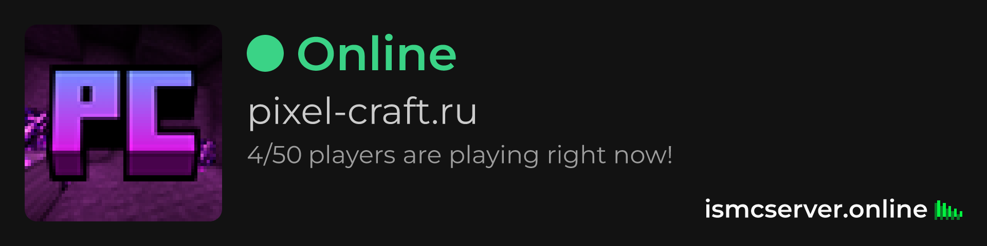 Dark Rounded image: https://ismcserver.online/pixel-craft.ru/widget?dark&rounded