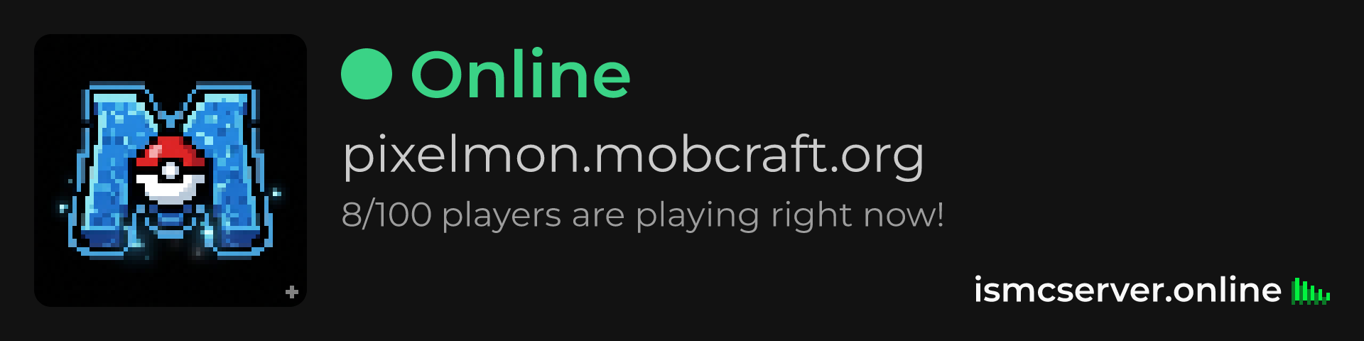 Dark theme: https://ismcserver.online/pixelmon.mobcraft.org/widget?dark=true