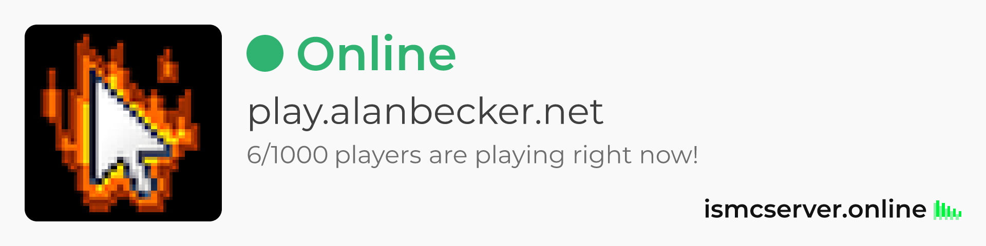 Dark Rounded image: https://ismcserver.online/play.alanbecker.net/widget?dark&rounded
