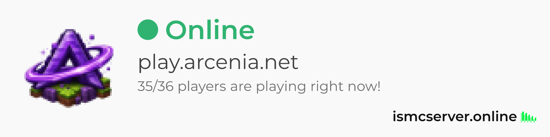 Dark theme: https://ismcserver.online/play.arcenia.net/widget?dark=true