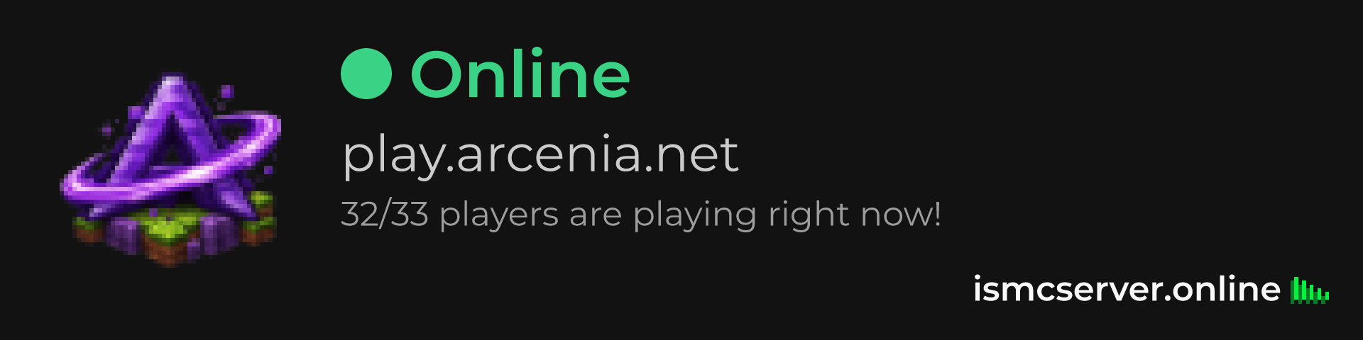 Dark Rounded image: https://ismcserver.online/play.arcenia.net/widget?dark&rounded