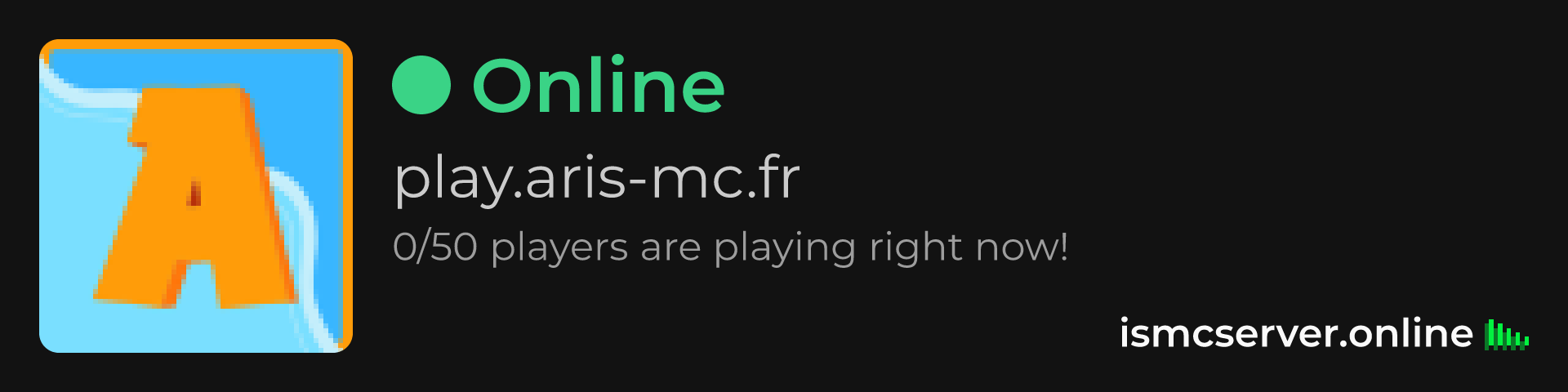 Dark Rounded image: https://ismcserver.online/play.aris-mc.fr/widget?dark&rounded