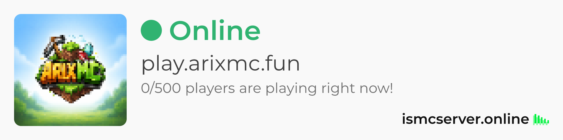 Dark theme: https://ismcserver.online/play.arixmc.fun/widget?dark=true