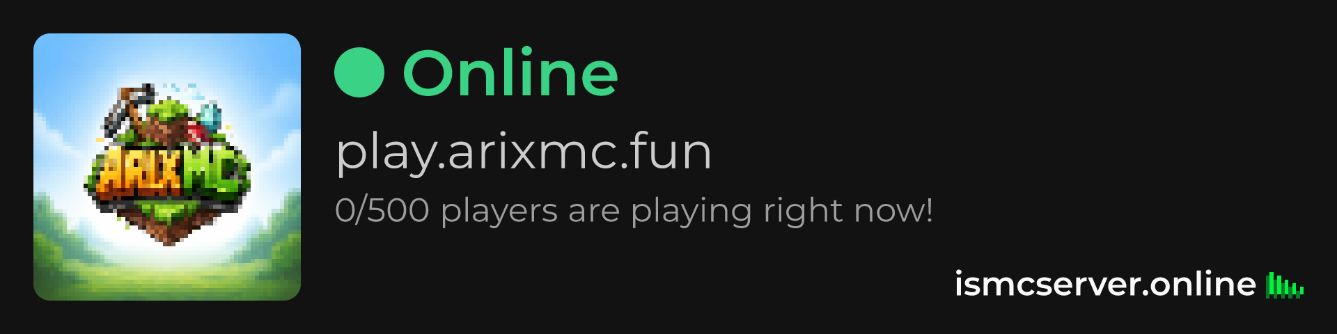 Dark Rounded image: https://ismcserver.online/play.arixmc.fun/widget?dark&rounded