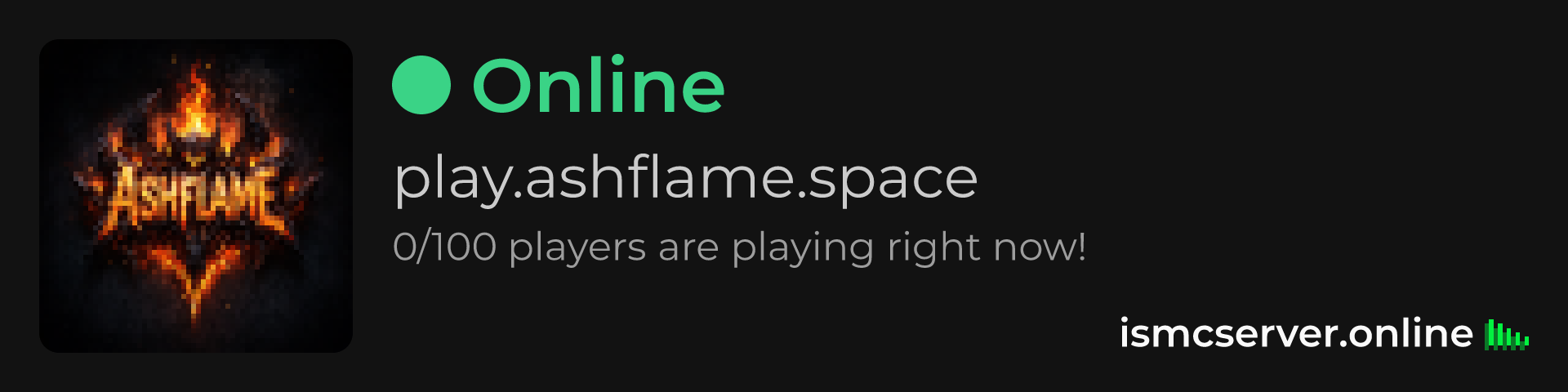 Dark Rounded image: https://ismcserver.online/play.ashflame.space/widget?dark&rounded
