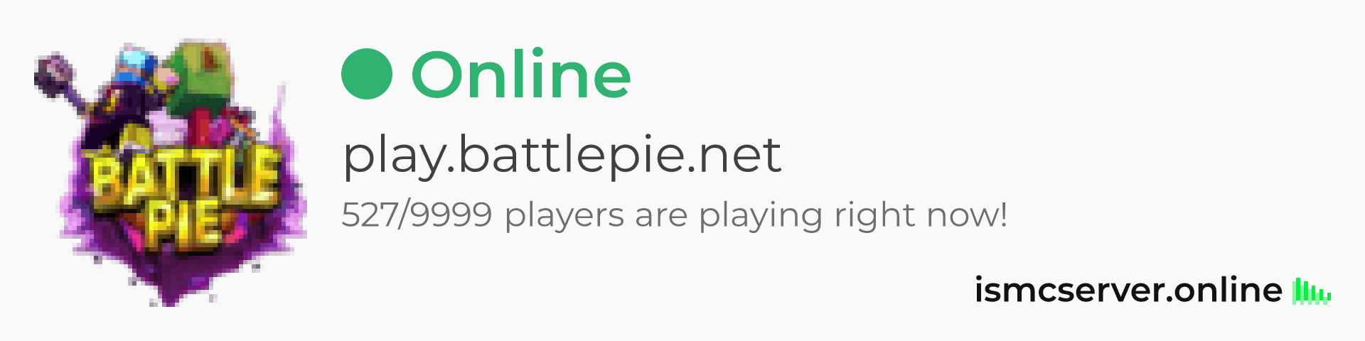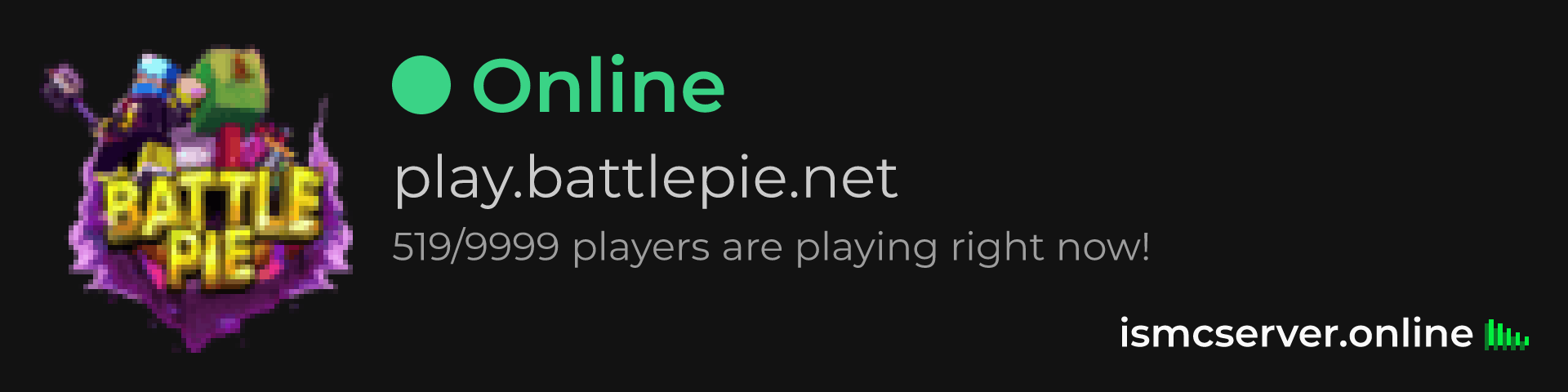 Dark theme: https://ismcserver.online/play.battlepie.net/widget?dark=true