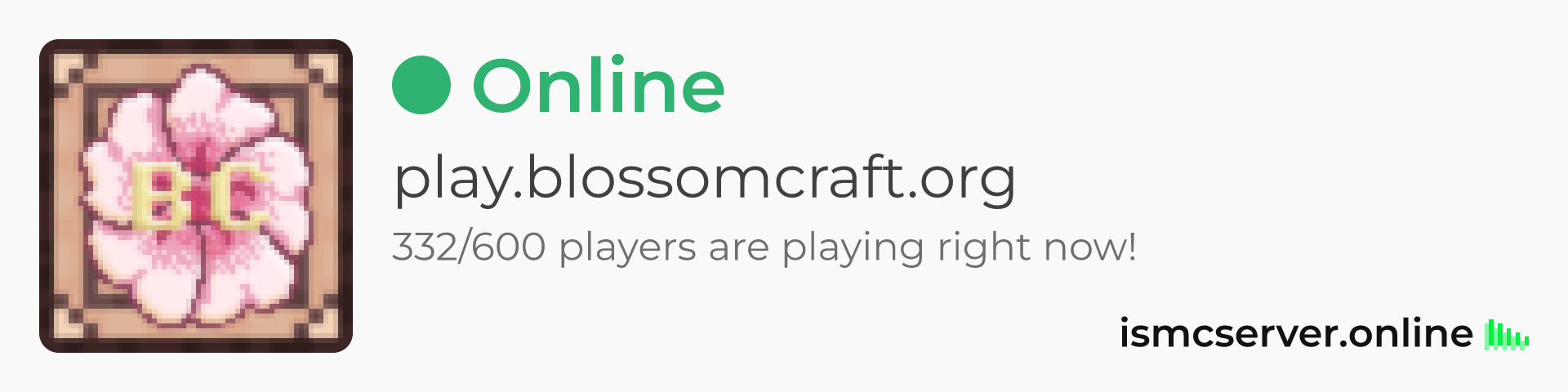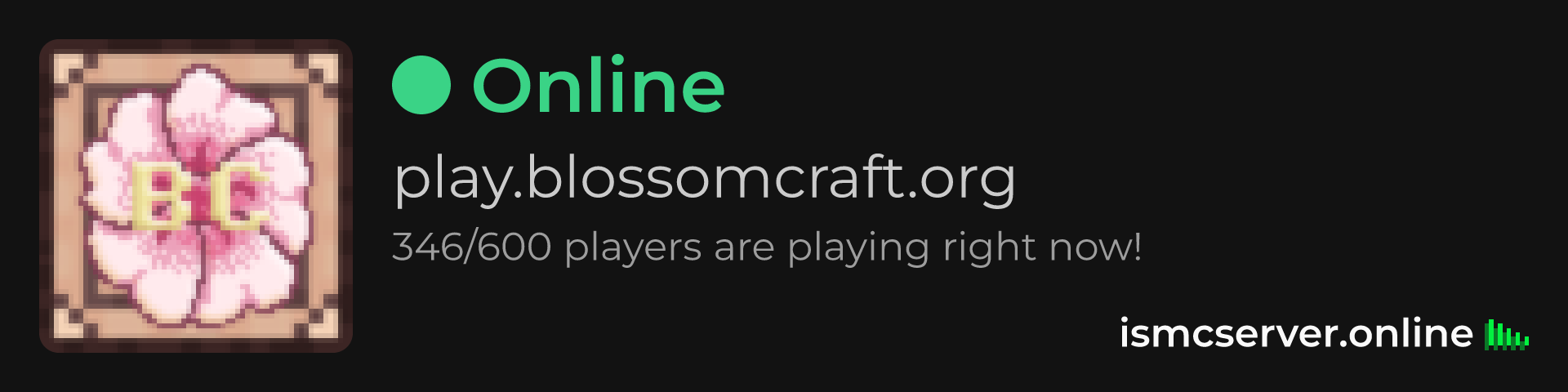 Dark theme: https://ismcserver.online/play.blossomcraft.org/widget?dark=true