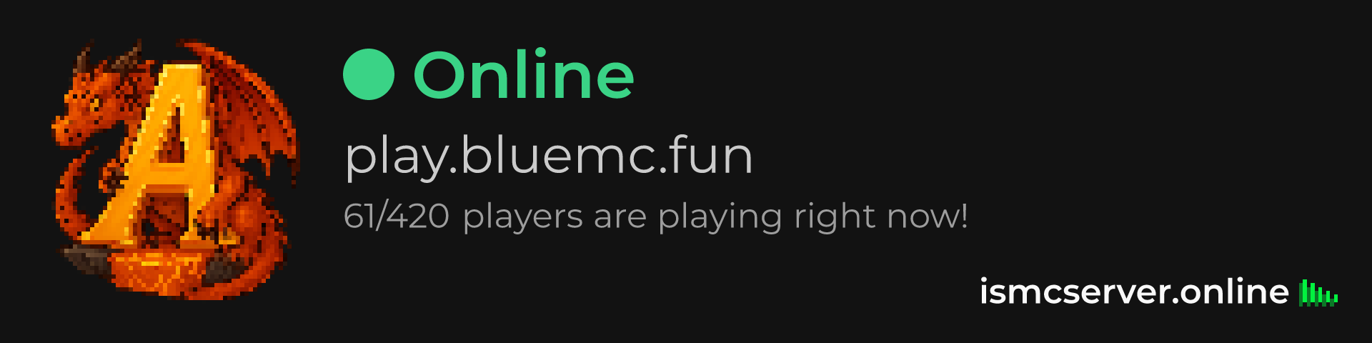 Dark theme: https://ismcserver.online/play.bluemc.fun/widget?dark=true