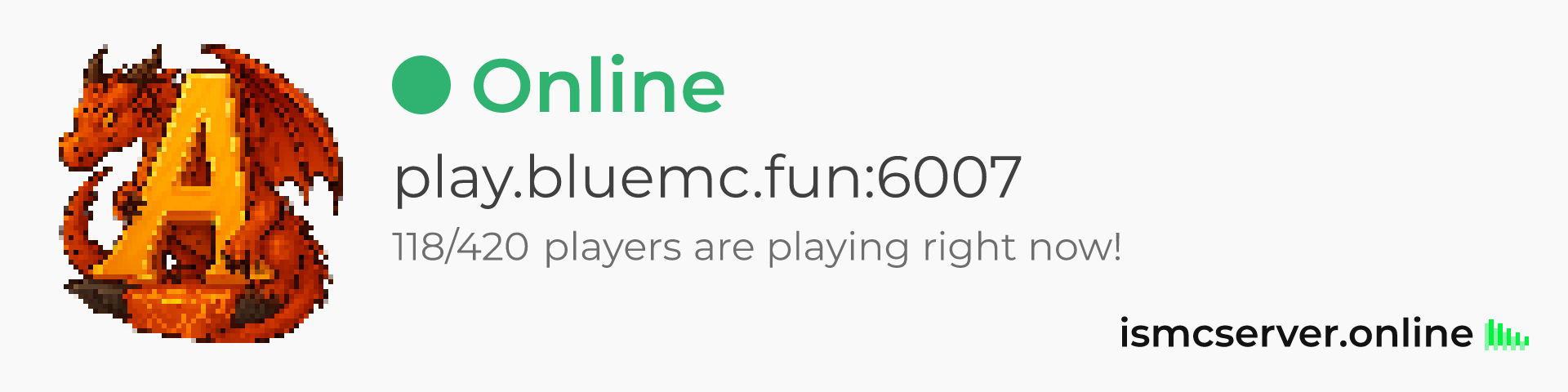 Dark theme: https://ismcserver.online/play.bluemc.fun:6007/widget?dark=true