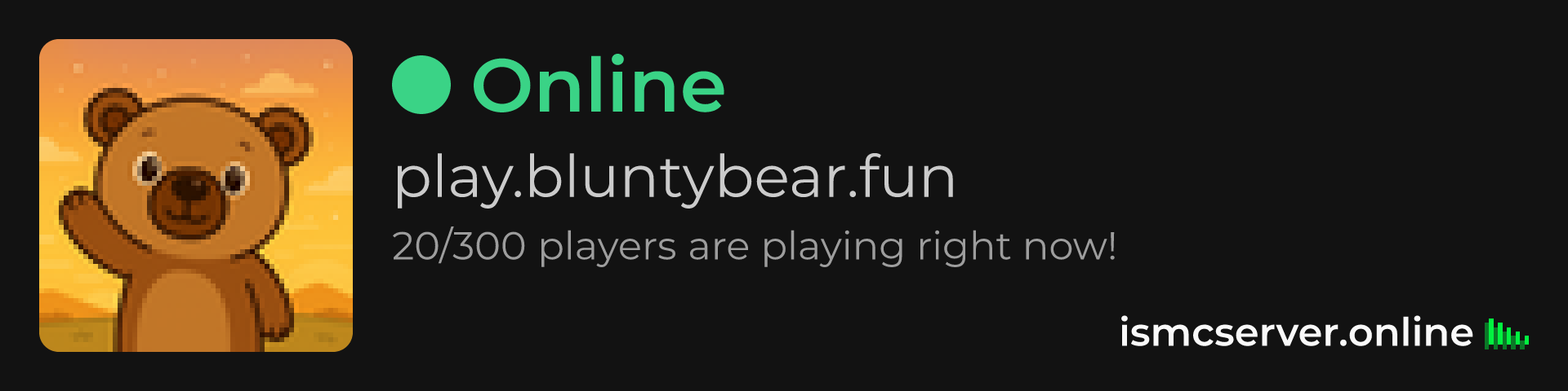 Dark theme: https://ismcserver.online/play.bluntybear.fun/widget?dark=true